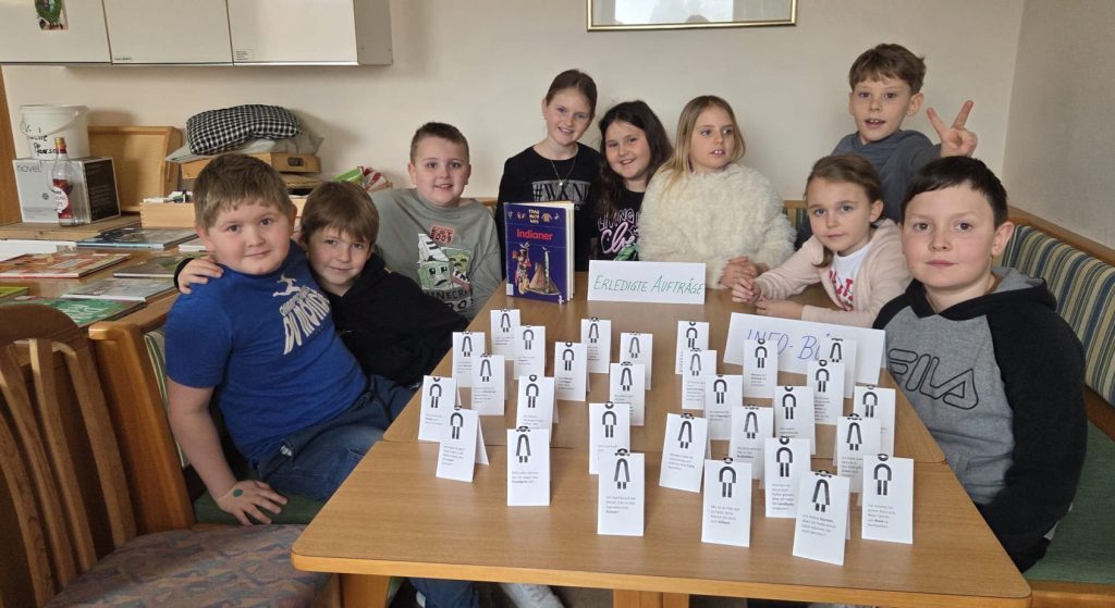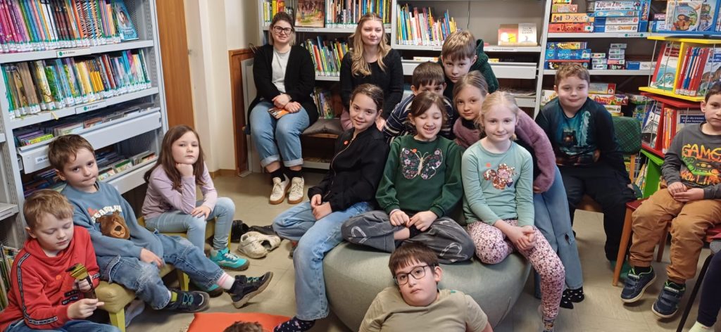 Am 13. März 2026 besuchten uns die 3. Klassen. Ihr Motto lautete „Ich verstehe, was ich lese“. Mit großer Aufmerksamkeit lauschten die Kinder der Geschichte „Grand Hotel Bell Vue“ von Hendrik Jonas. Beim anschließenden Stationenbetrieb im „Infobüro“ konnten sie ihr Leseverständnis unter Beweis stellen: Sie zogen Fragekarten, suchten mit Hilfe von Sachbüchern nach den passenden Antworten und präsentierten ihre Ergebnisse anschließend in einem kleinen Museumsrundgang. Auch hier standen Schmökern und Bücher-Ausleihen auf dem Programm. Verabschiedet wurden die Kinder mit Abschiedsgrüßen von Lena Raubaum.